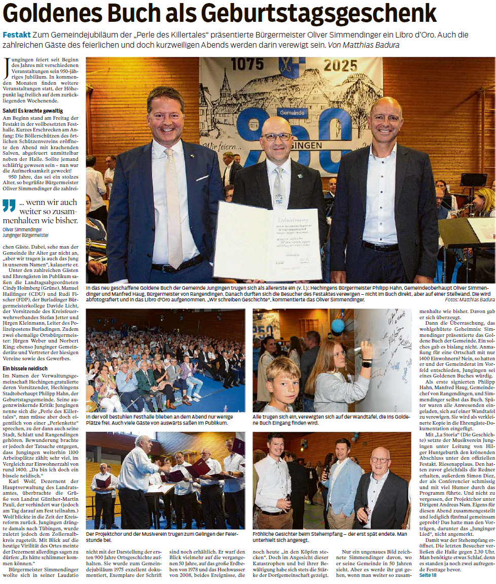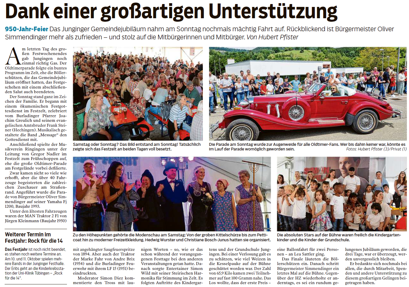 Schaut euch die Zeitungsberichte für Freitag/Samstag/Sonntag aus der Hohenzollerischen Zeitung (Südwestpresse) an.