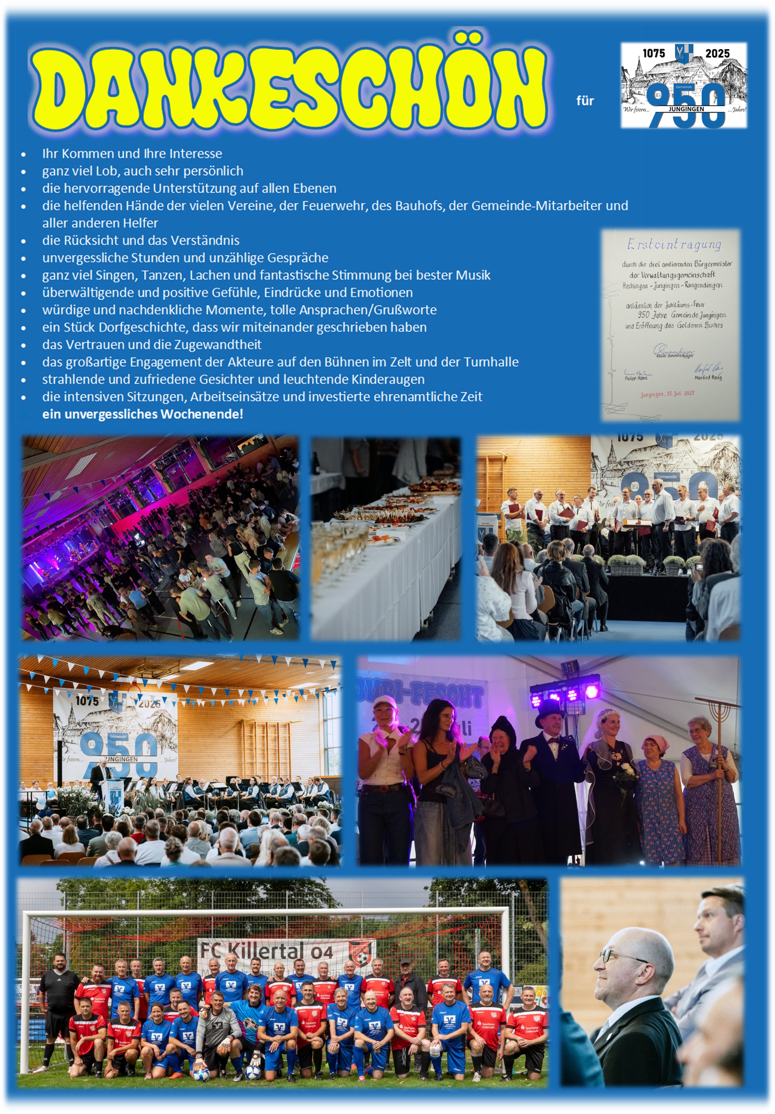 Es war ein tolles Fest! Nur Lob von allen Seiten - das Wetter hat mitgespielt - keine negativen Vorkommnisse - so soll es sein! Wir freuen uns auf die nächsten 950 Jahre!